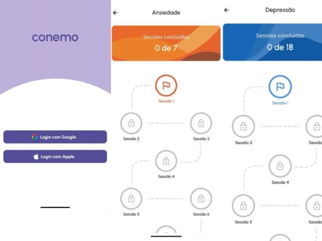 O CONEMO é um app de celular que propõe técnicas baseadas na terapia cognitivo-comportamental (TCC) para reduzir sintomas de ansiedade e depressão. A ferramenta oferece jornadas interativas organizadas em sessões com vídeos e estratégias que sugerem atividades prazerosas, dicas e práticas para a promoção da saúde e do bem-estar.