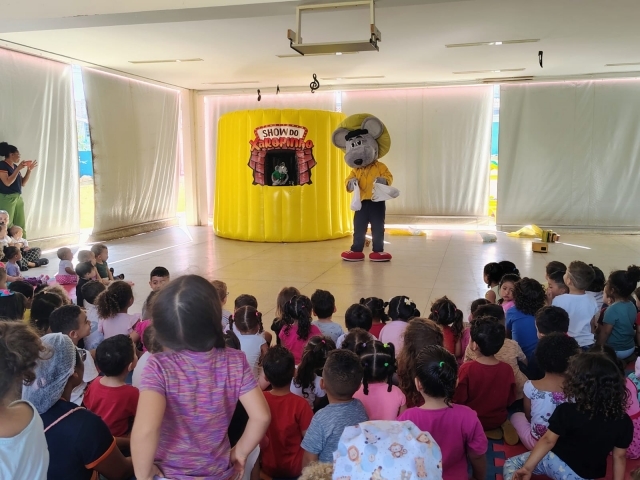 Nesta segunda-feira (29), Indaiatuba recebeu o espetáculo “Salvem o Planeta Terra com Xaropinho”, que encantou as crianças da Creche Prof.ª Marina Maschietto Magnusson e da Somos do Bem. Estrelado por Xaropinho e sua turma, famoso boneco do Programa do Ratinho, o musical combina diversão e aprendizado em uma proposta voltada à conscientização ambiental.